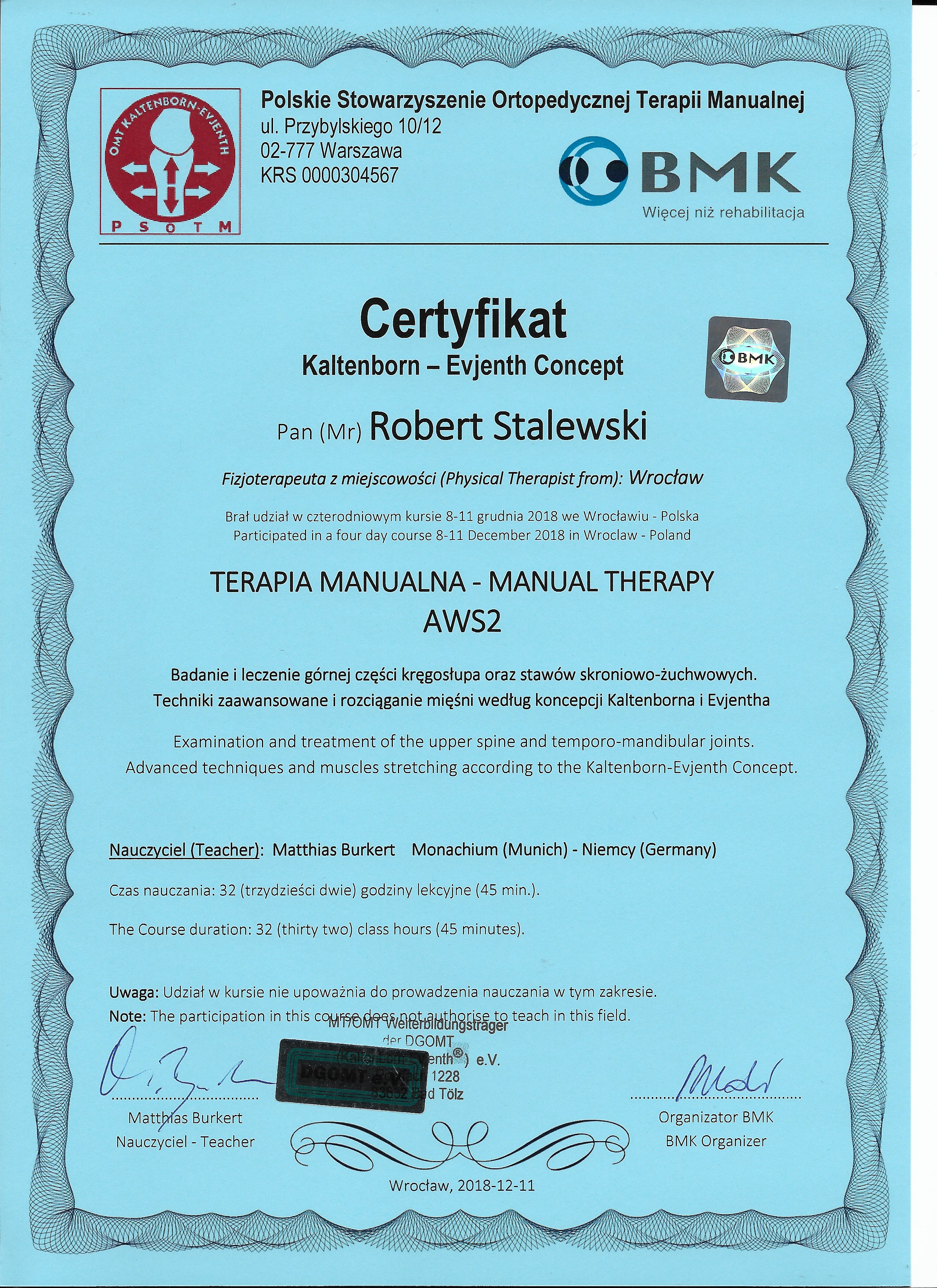 > od 2016 prywatna praktyka fizjoterapeutyczna Wrocław, Polska