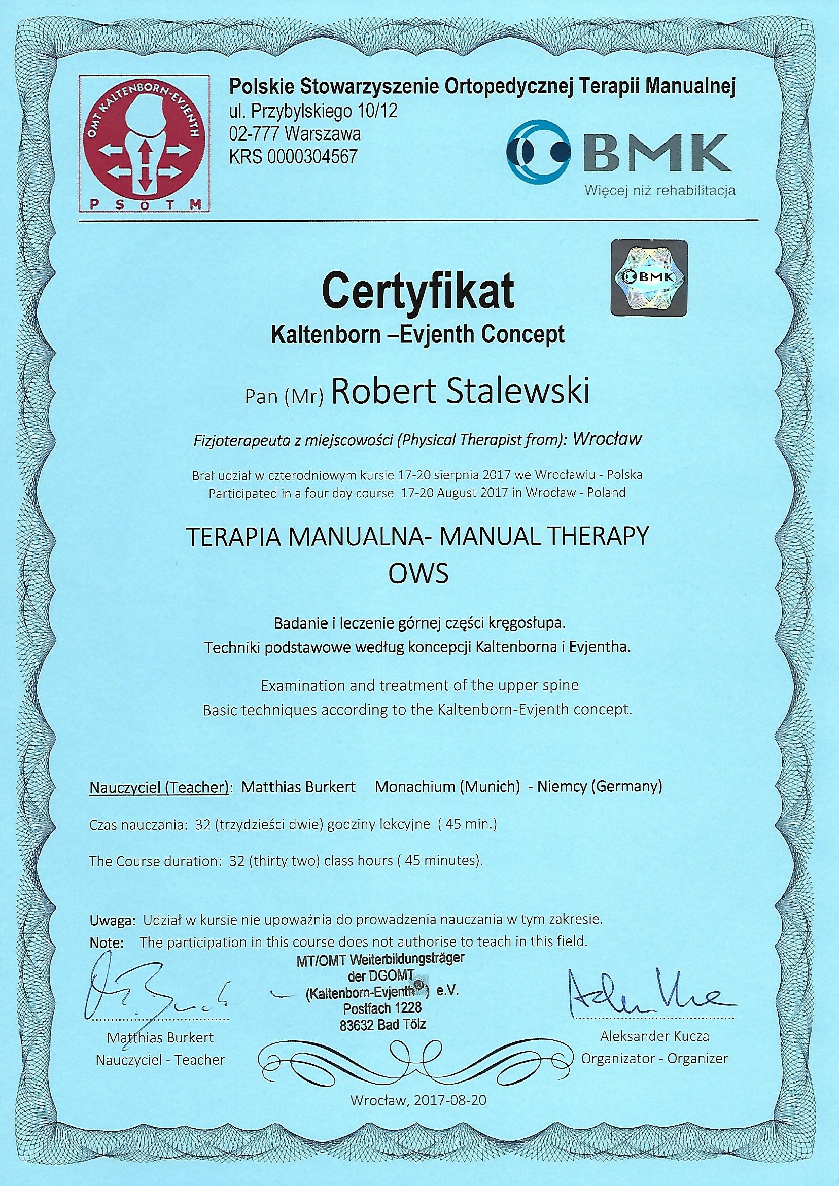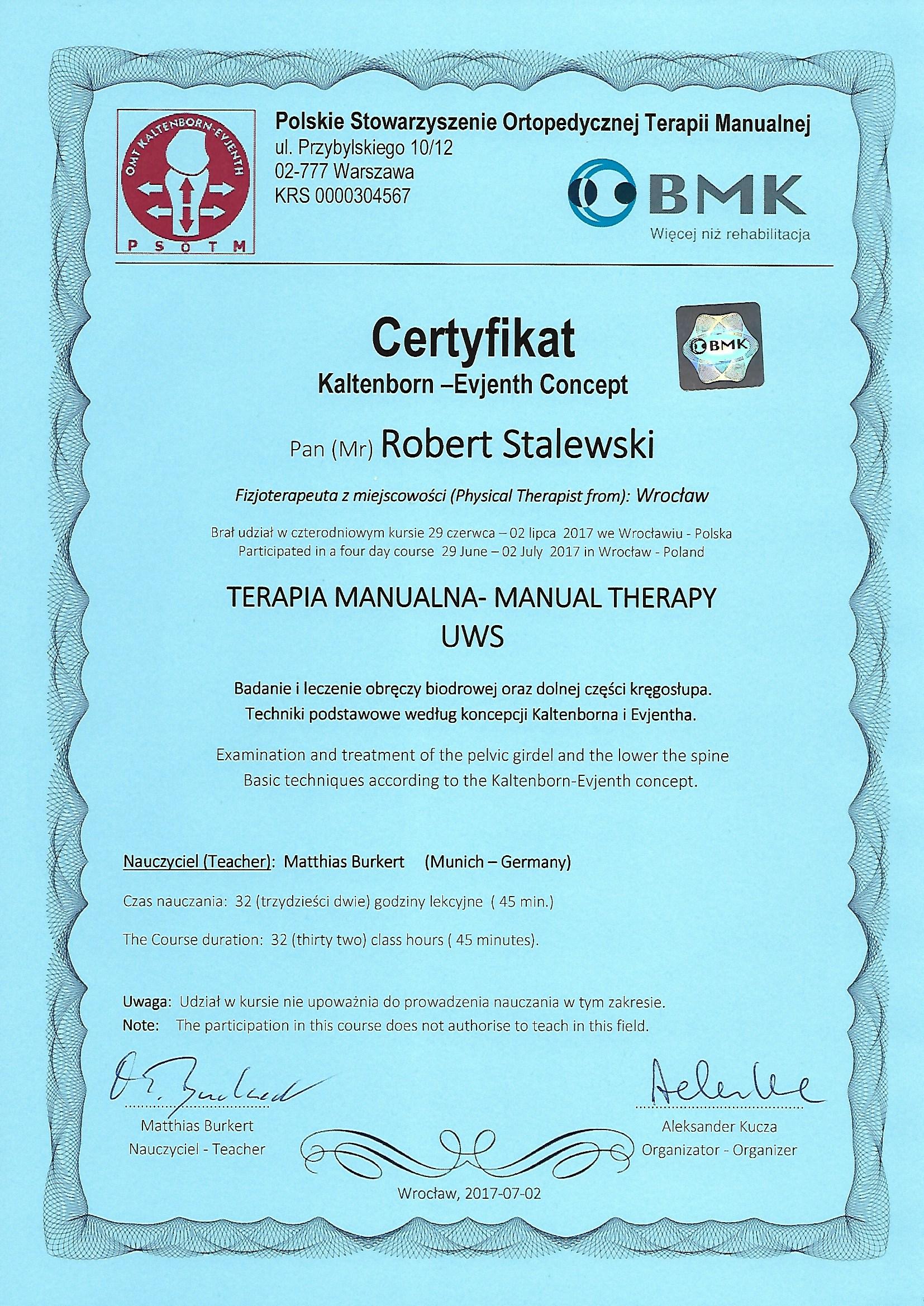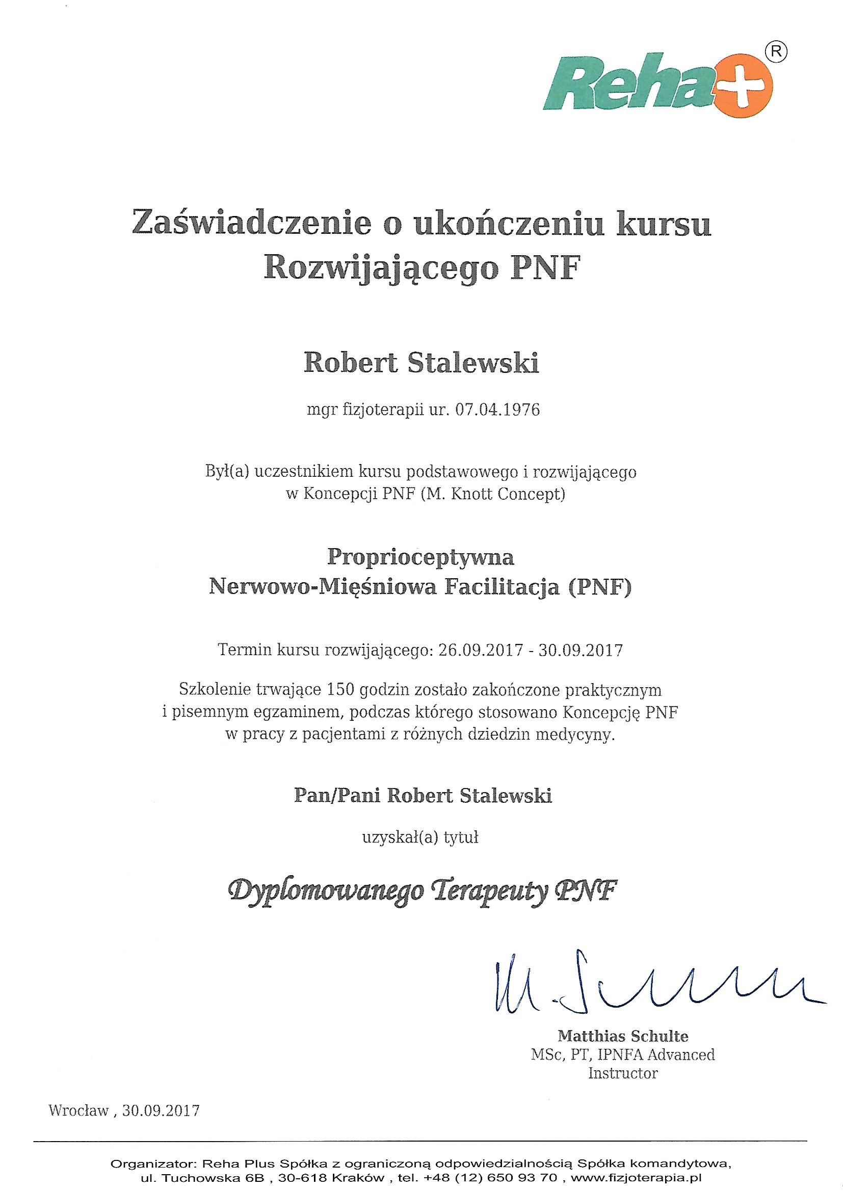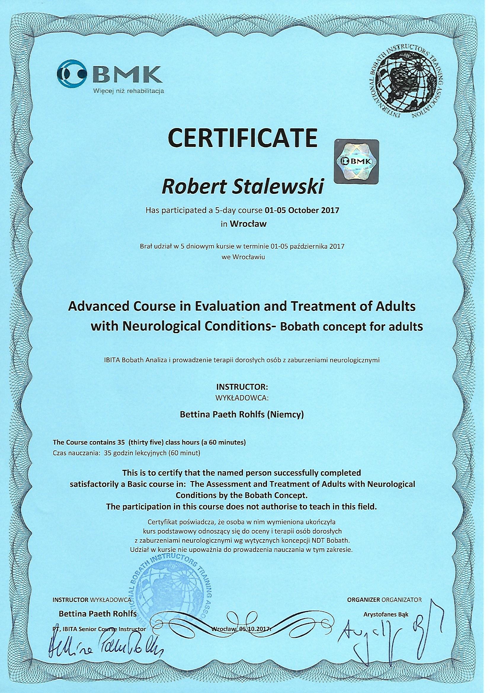 > 2006/2007 - intensywne 6 miesięczne warsztaty z zakresu terapii neurorozwojowych NDT Bobath i Vojta z wykorzystaniem urządzeń antygrawitacyjnych i kombinezonów terapeutycznych, Anaheim, Kalifornia, USA.