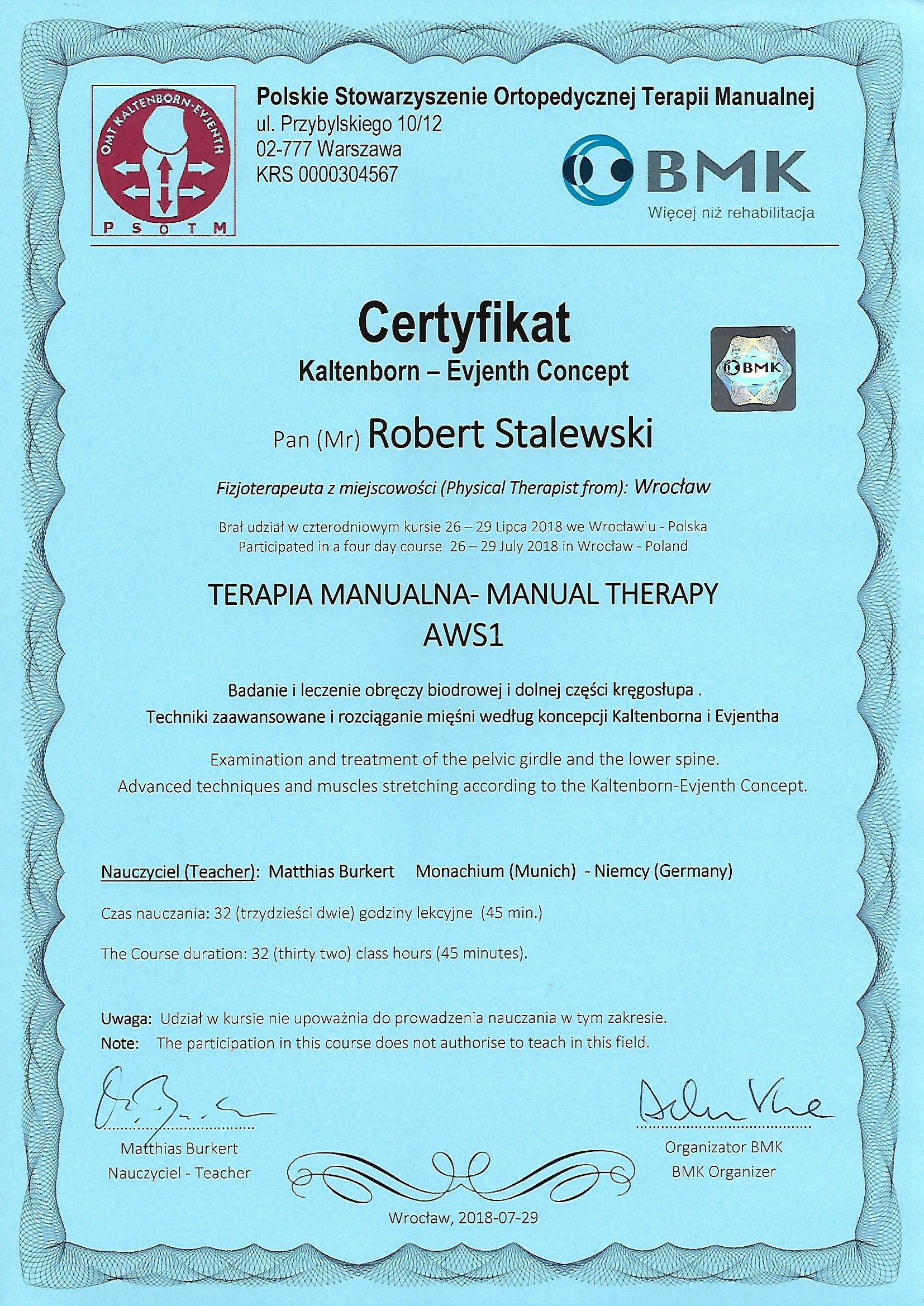 > 2006/2007 - intensywne 6 miesięczne warsztaty z zakresu terapii neurorozwojowych NDT Bobath i Vojta z wykorzystaniem urządzeń antygrawitacyjnych i kombinezonów terapeutycznych, Anaheim, Kalifornia, USA.